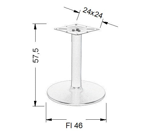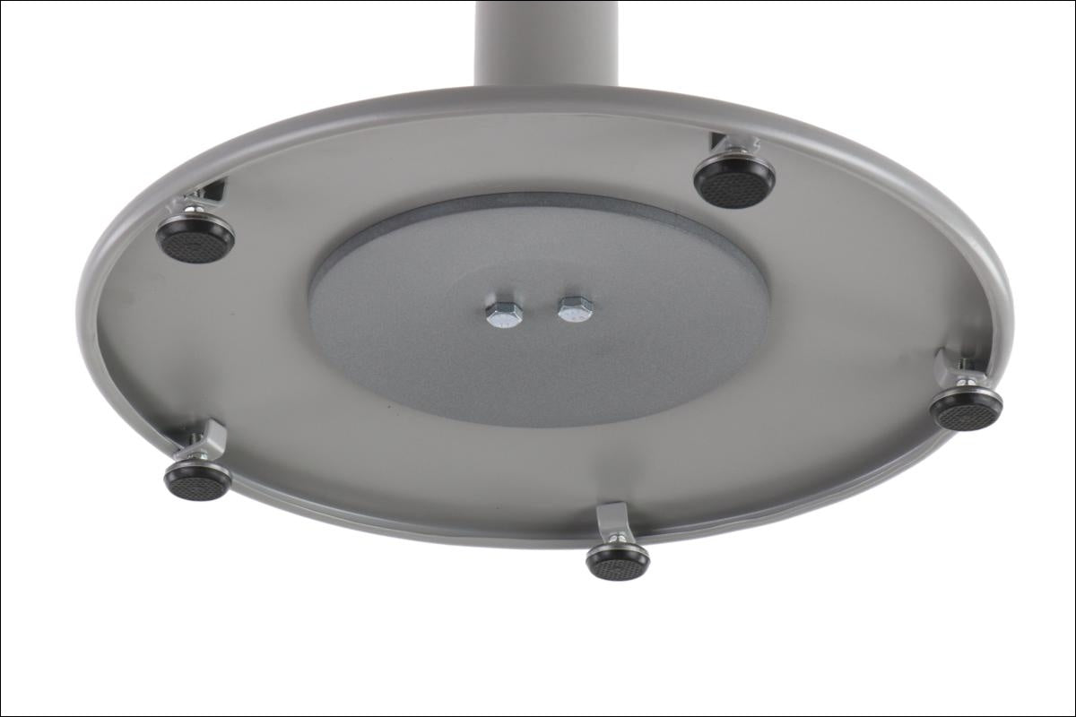 Modern Szerkezet: Az alsó talplemez átmérője 46 cm préselt acélból készült porszórt bevonattal. A láb átmérője 75 mm. Mindkét elem porszórt acélból készült, amely ellenálló felületet biztosít. Összmagasság: 57,5 cm