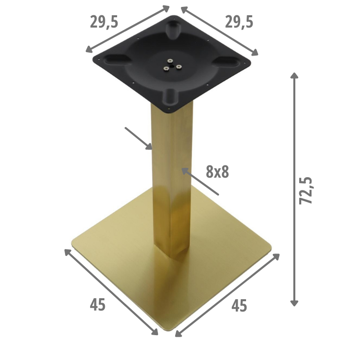 - GOLD rozsdamentes acélból készült lábak, keresztmetszet 80x80 mm, falvastagság 1,2 mm