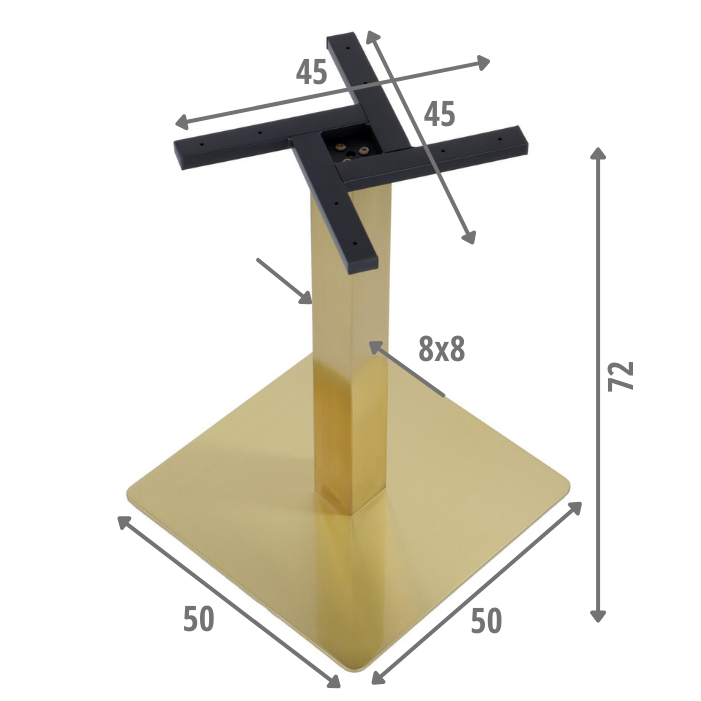 - GOLD rozsdamentes acélból készült lábak, keresztmetszet 80x80 mm, falvastagság 1,2 mm