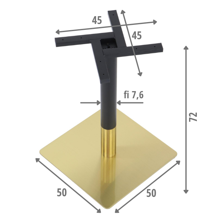 - GOLD rozsdamentes acélból és fekete acélból készült lábak, átmérő 76 mm, falvastagság 1,2 mm