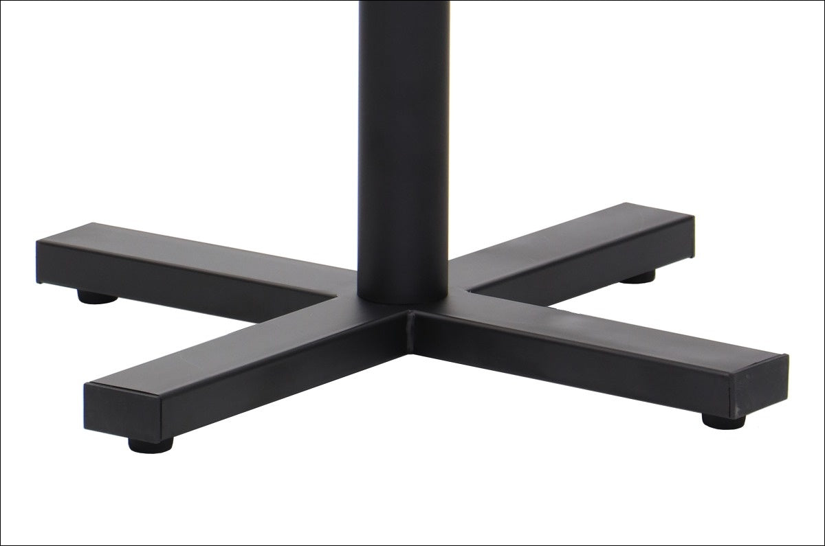 Ez a minimalista, kereszttalpú asztalláb ideális választás azoknak a modern kávézóknak, irodáknak és éttermeknek, ahol a funkcionalitás, a design és a lábtér optimalizálása kiemelt szempont. A matt fekete acélprofilok tiszta, ipari eleganciát visznek a térbe.
