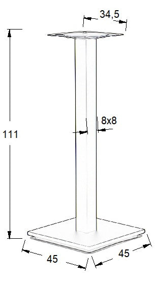 Modern, robusztus megjelenésű acél asztalláb (45x45 cm-es négyzetes talp), kifejezetten nagy igénybevételű környezetekhez. A 80x80 mm-es porszórt acél láb tiszta, ipari stílust kölcsönöz a belső térnek.