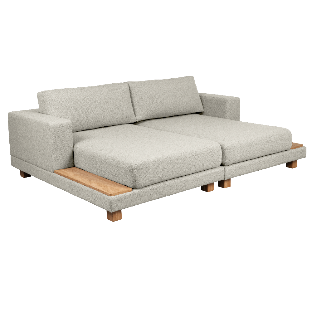 Az MAASUPA kanapé három színben érhető el, bézs, világos szürke és sötét szürke, így könnyen illeszthető bármilyen belső térhez. A 230x170x62 cm méretű bútor elegendő helyet kínál a vendégek számára a pihenéshez vagy beszélgetéshez. Az elegáns tölgyfa lábak a stabilitás mellett természetes megjelenést kölcsönöznek a kanapénak.