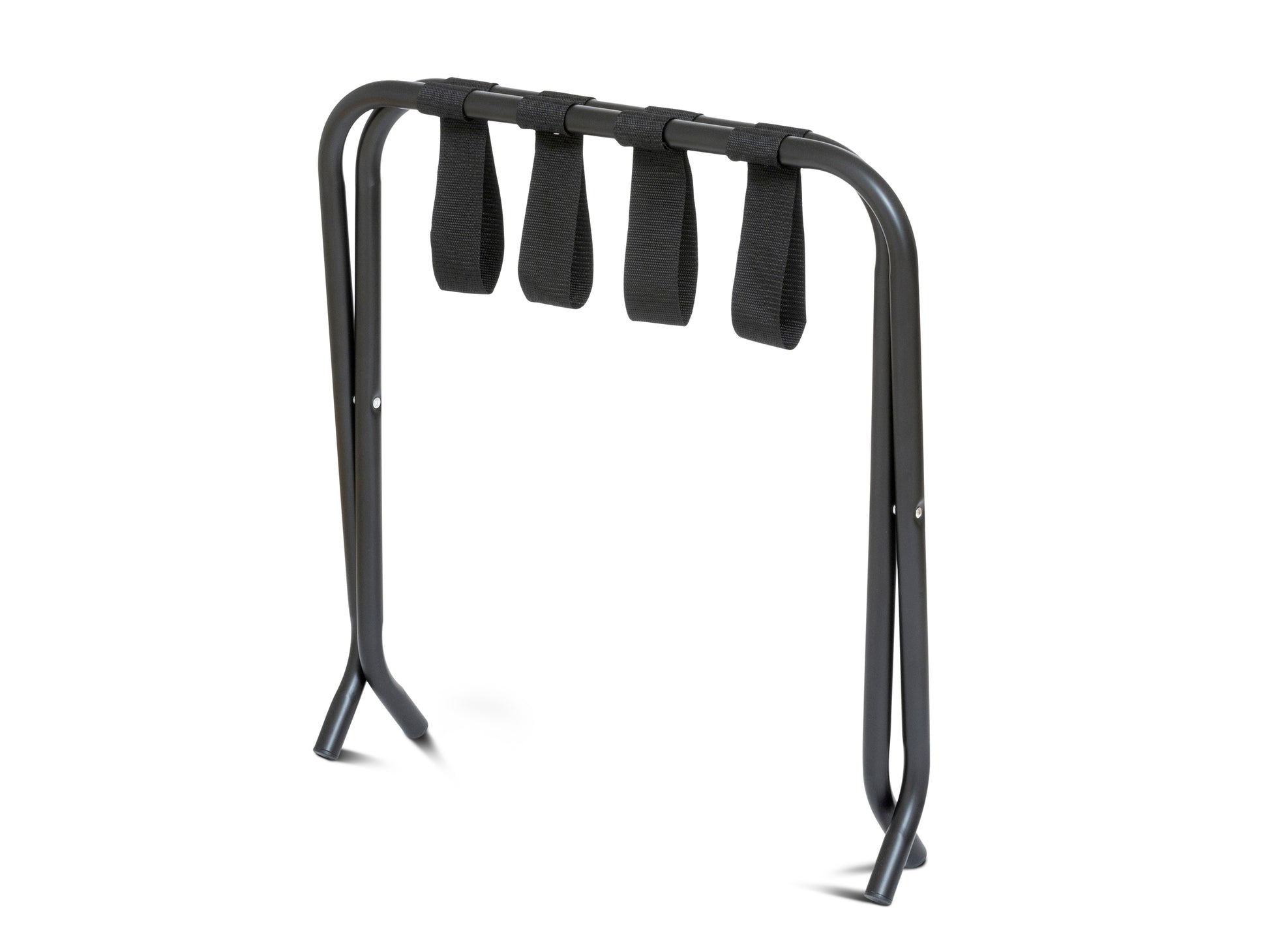 Poggyásztartóink tökéletes kiegészítők bármely szállodai szobába. Kollekciónk bármely stílusnak megfelel. Erős és praktikus, kiváló minőségű és többféle kivitelben kapható. A modern 25 mm vastag, tömör acélcsövekből készült bőröndtartó kitűnő választás. Mindegyik modell összecsukható, így helyet takaríthat meg, ha nem használják pedig egyszerűen és könnyen felhajthatja.