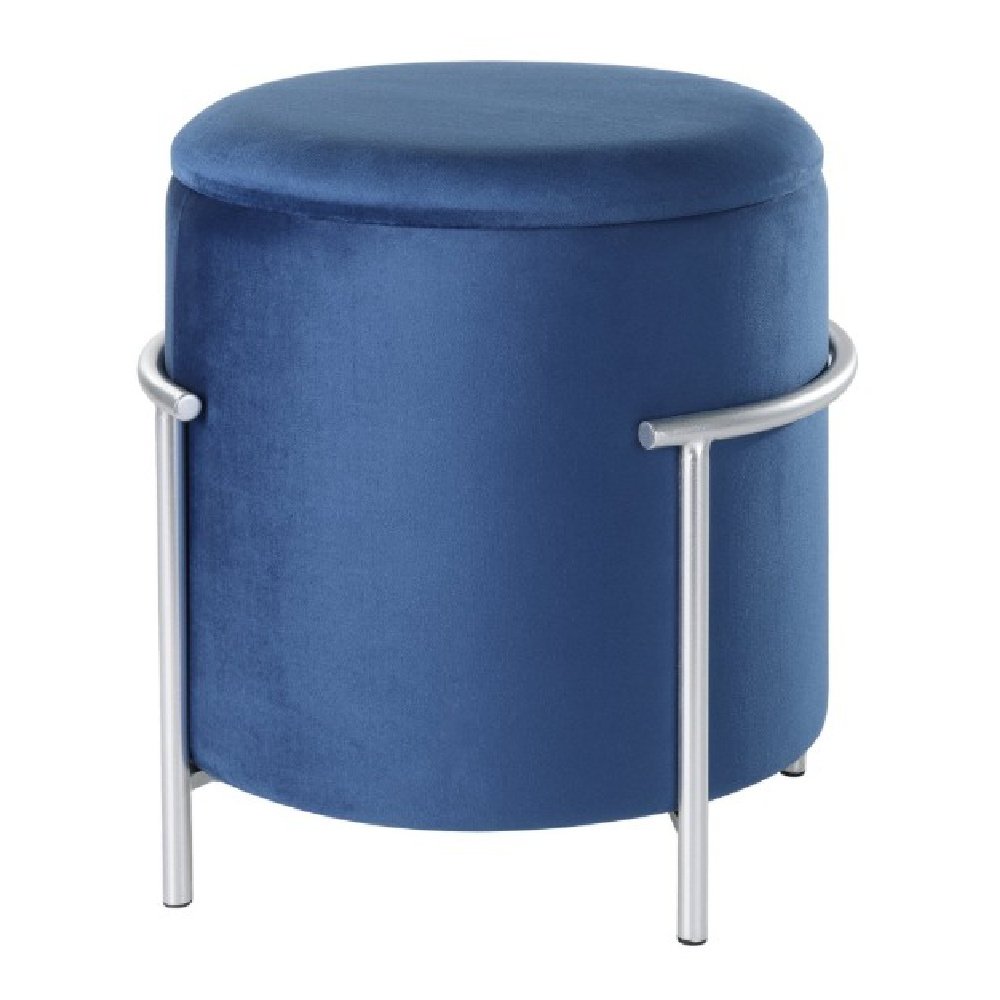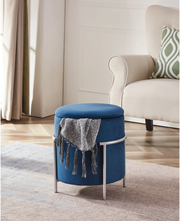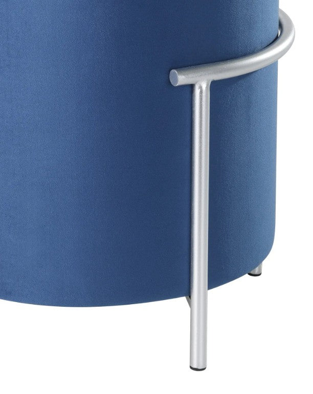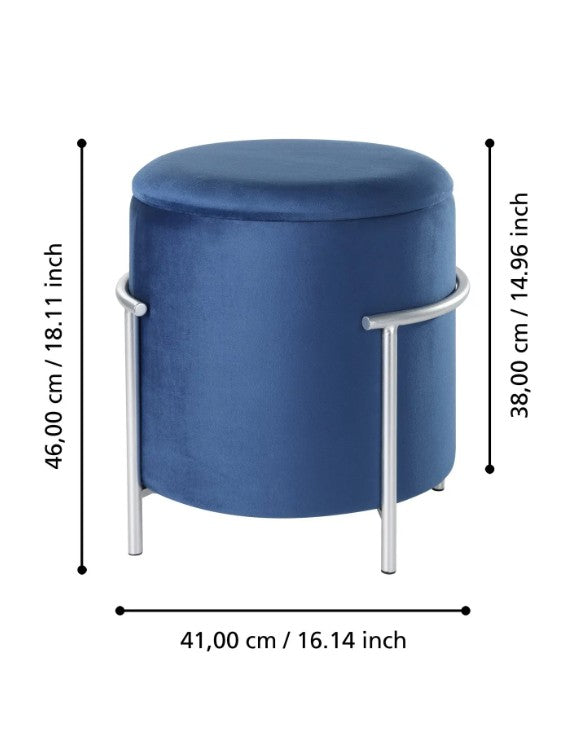 - Anyag: 100% poliészter kék színű ülőfelület, ezüst színű fém lábak