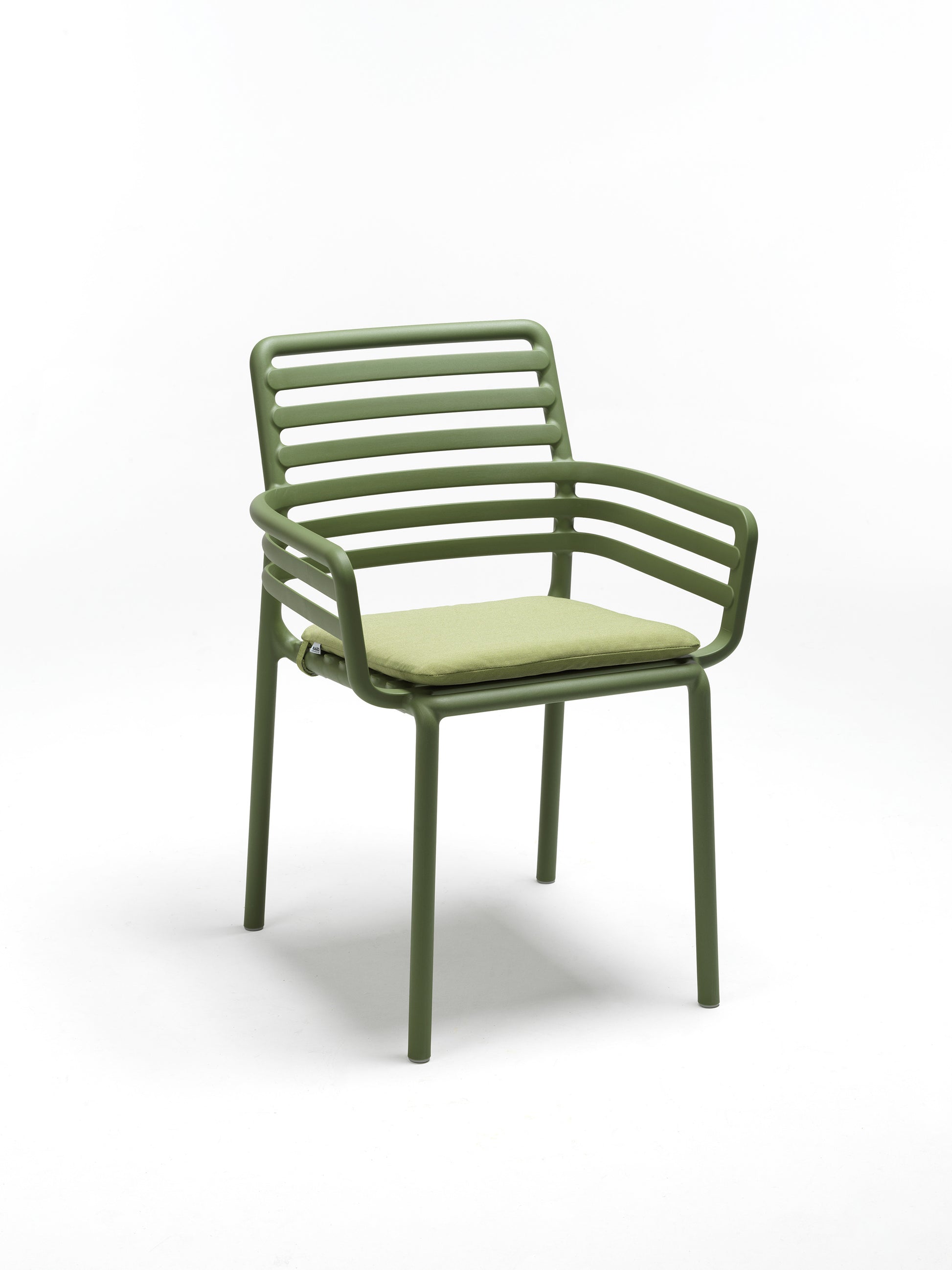 Színes, poliészter szálas akrilszövet párna a NARDI DOGA karfás székekhez. Poliuretán habbal bélelve, tépőzáras szövetpántokkal. A párna külső borítása levehető 30 °C-on, kímélő programon mosható.