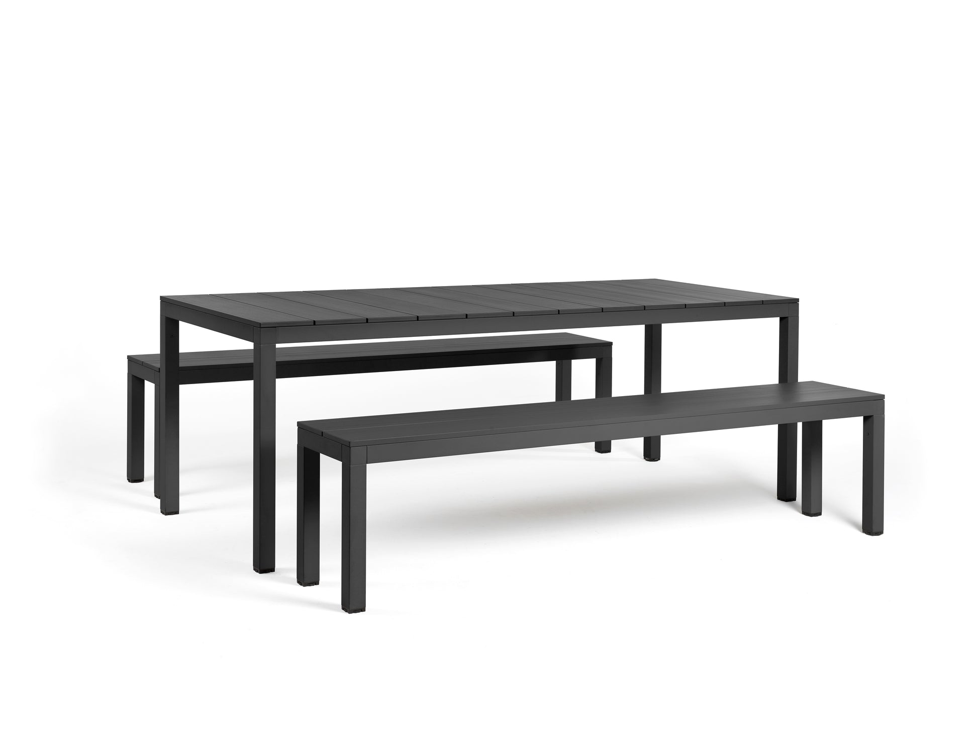 A NARDI RIO ALU egy rendkívül részletgazdag kültéri pad. A keret és a vonalmintával ellátott ülőfelület egyaránt alumínium elemekből készült. Hívogató megjelenésével, letisztult vonalaival és az ülőfelület jellegzetes lécsorrendjével tűnik ki.
