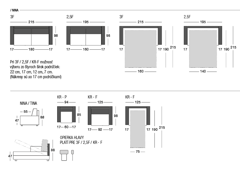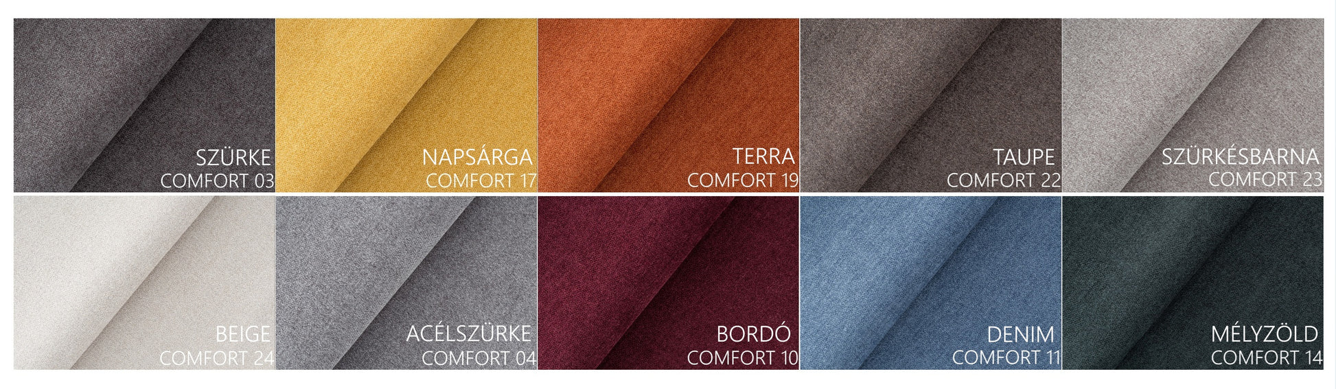 A NINA fémmechanikás kanapéágy több típusú és színű szövettel választható.