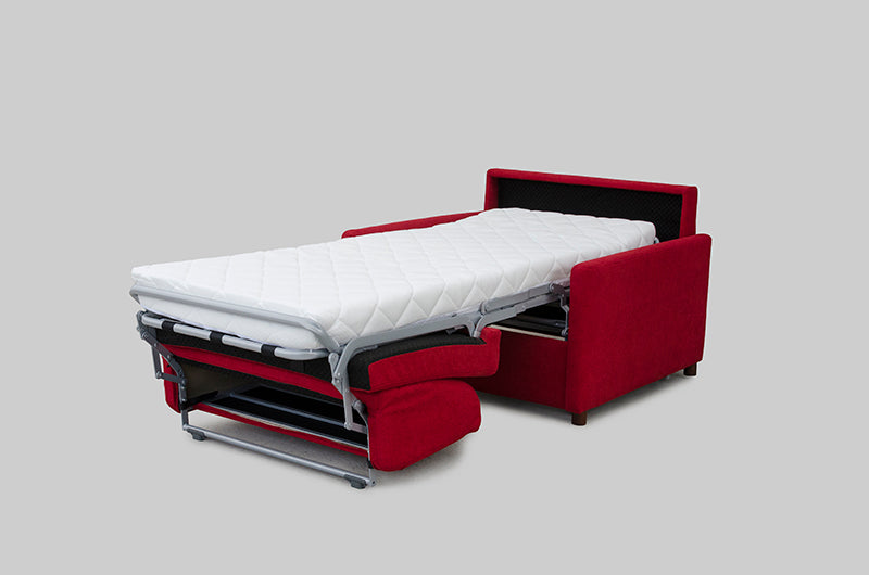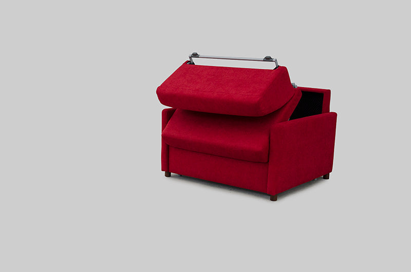 A termék ággyá alakítása egy mozdulattal megoldható, mivel a támlát és ülőfelületet a fekvőfelület alá hajtja a mechanika.