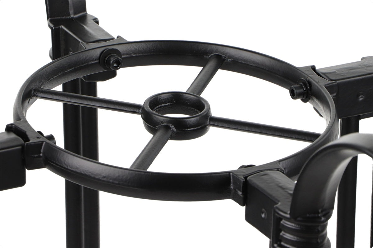 Ez az SH-5033-2/B asztalláb egy masszív, dupla oszlopos megoldás, amelyet kifejezetten a vendéglátóipari kültéri és beltéri terek számára terveztek. A termék teljes egészében öntöttvasból készült, ami nemcsak a klasszikus, díszes megjelenésért felel, hanem garantálja a kiemelt nehéz és stabil alapot, ami a nagy asztallapok esetén elengedhetetlen.