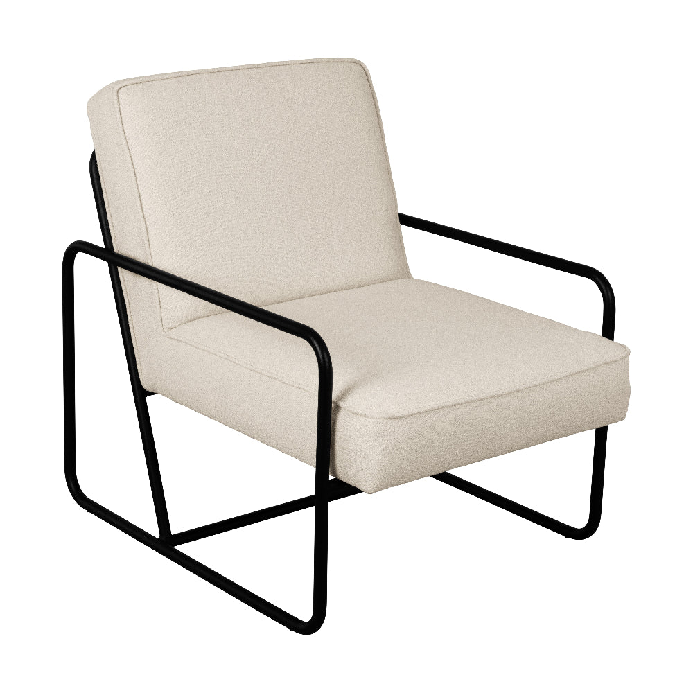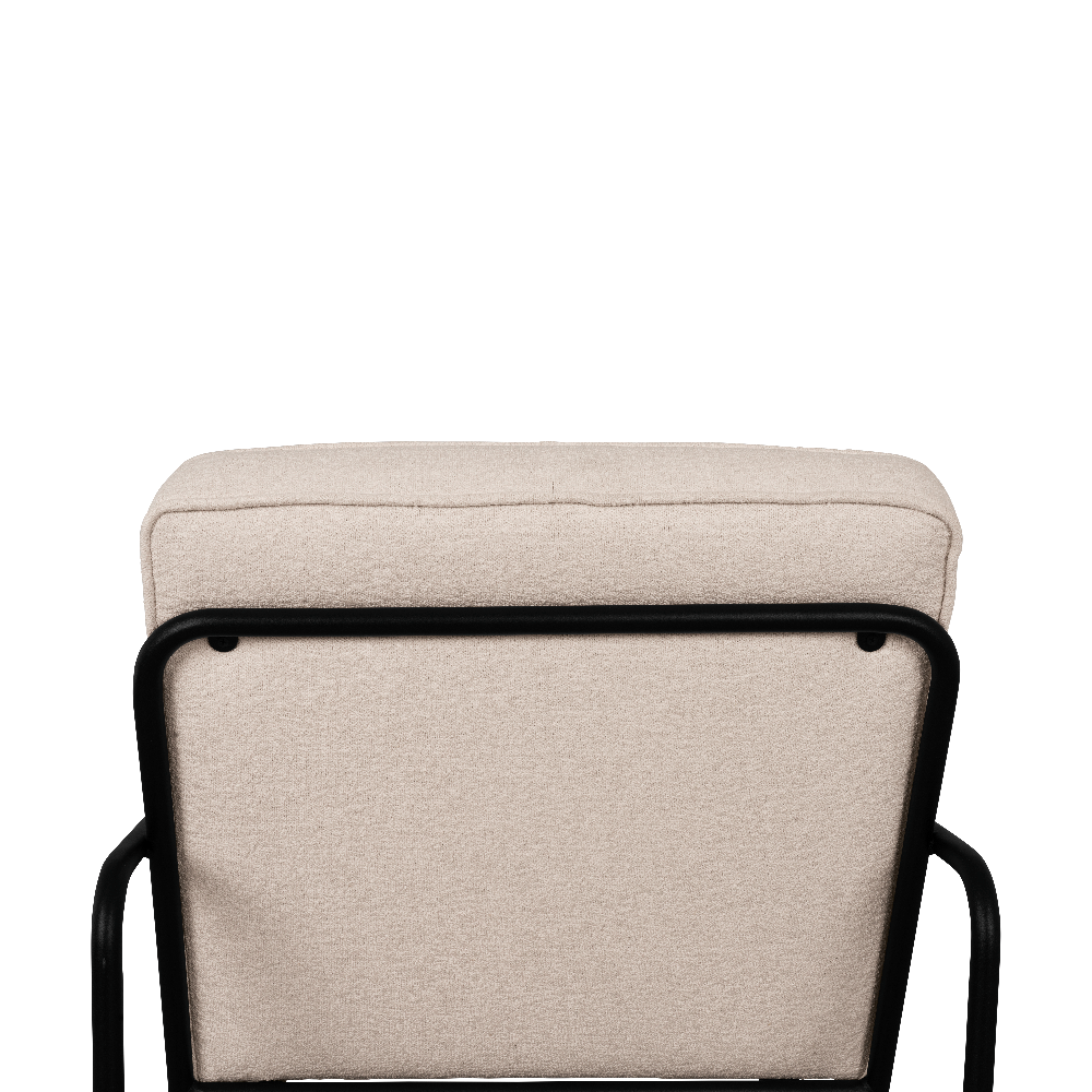 Az ülőfelület és a háttámla anyaga 100% poliészter boucle, amely tartós és könnyen tisztítható, így tökéletes választás nagy forgalmú helyeken, mint például vendégszobák vagy közös helyiségek. A váz fekete fémből készült, amely stabilitást és modern megjelenést kölcsönöz a bútornak. A letisztult dizájn és a különböző színekben elérhető kárpit lehetővé teszi, hogy a fotel tökéletesen illeszkedjen bármilyen belső térbe, legyen az klasszikus vagy modern stílusú.