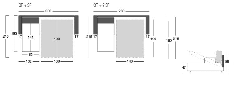 L-alakú része felnyitható, így nem csak plusz ülőhelyet, de extra tárolóhelyet is biztosít az ágynemű részére.