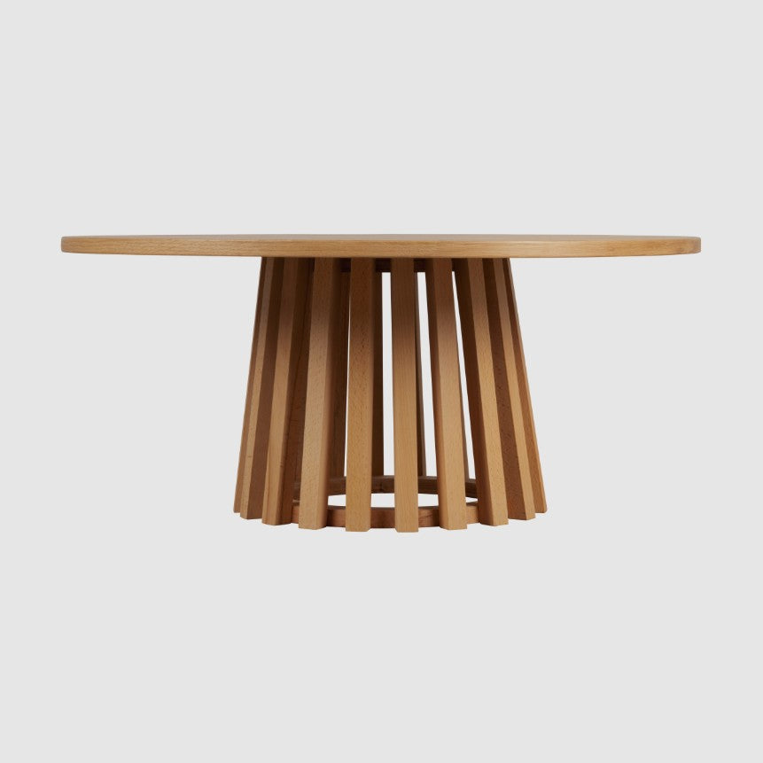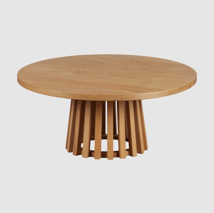 Az asztal strapabíró tölgy furnér anyagból készült, amely hosszú élettartamot és stabil szerkezetet biztosít. Méretei: magassága 35 cm, átmérője 80 cm ideális kisebb helyiségekbe is, ahol helytakarékos megoldásra van szükség. Kialakítása egyszerű, mégis figyelemfelkeltő, amely modern esztétikát kölcsönöz a belső térnek.