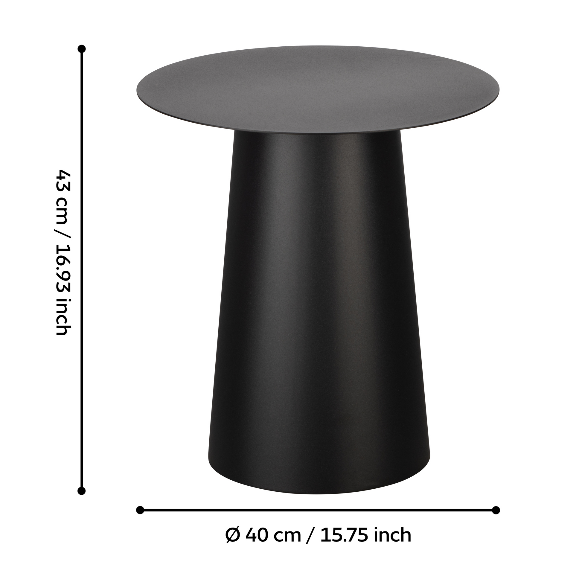 Az asztal strapabíró fém anyagból készült, amely hosszú élettartamot és stabil szerkezetet biztosít. Kompakt mérete (40x43 cm) ideális kisebb helyiségekbe is, ahol helytakarékos megoldásra van szükség. Kialakítása egyszerű, mégis figyelemfelkeltő, amely modern esztétikát kölcsönöz a belső térnek.